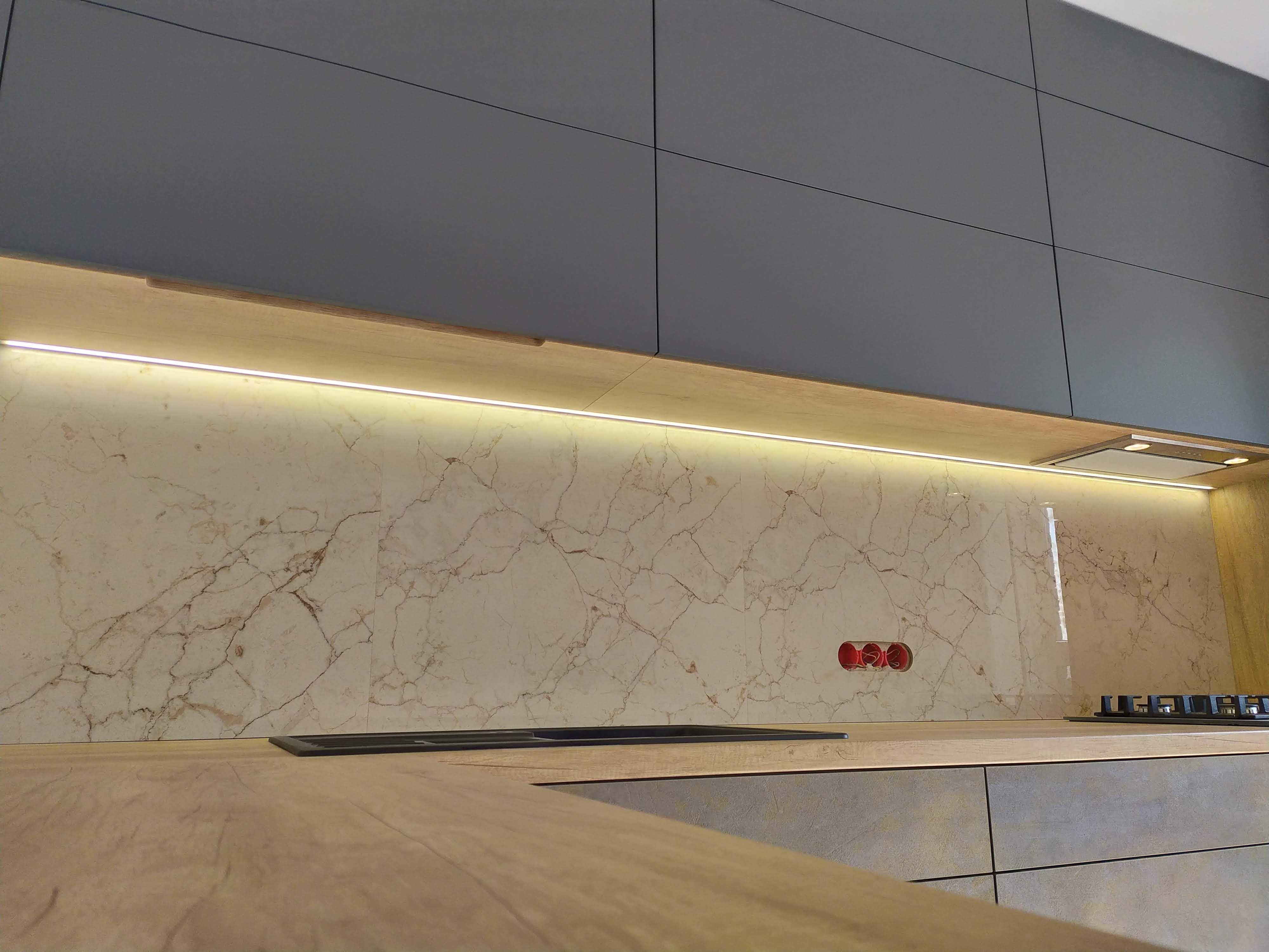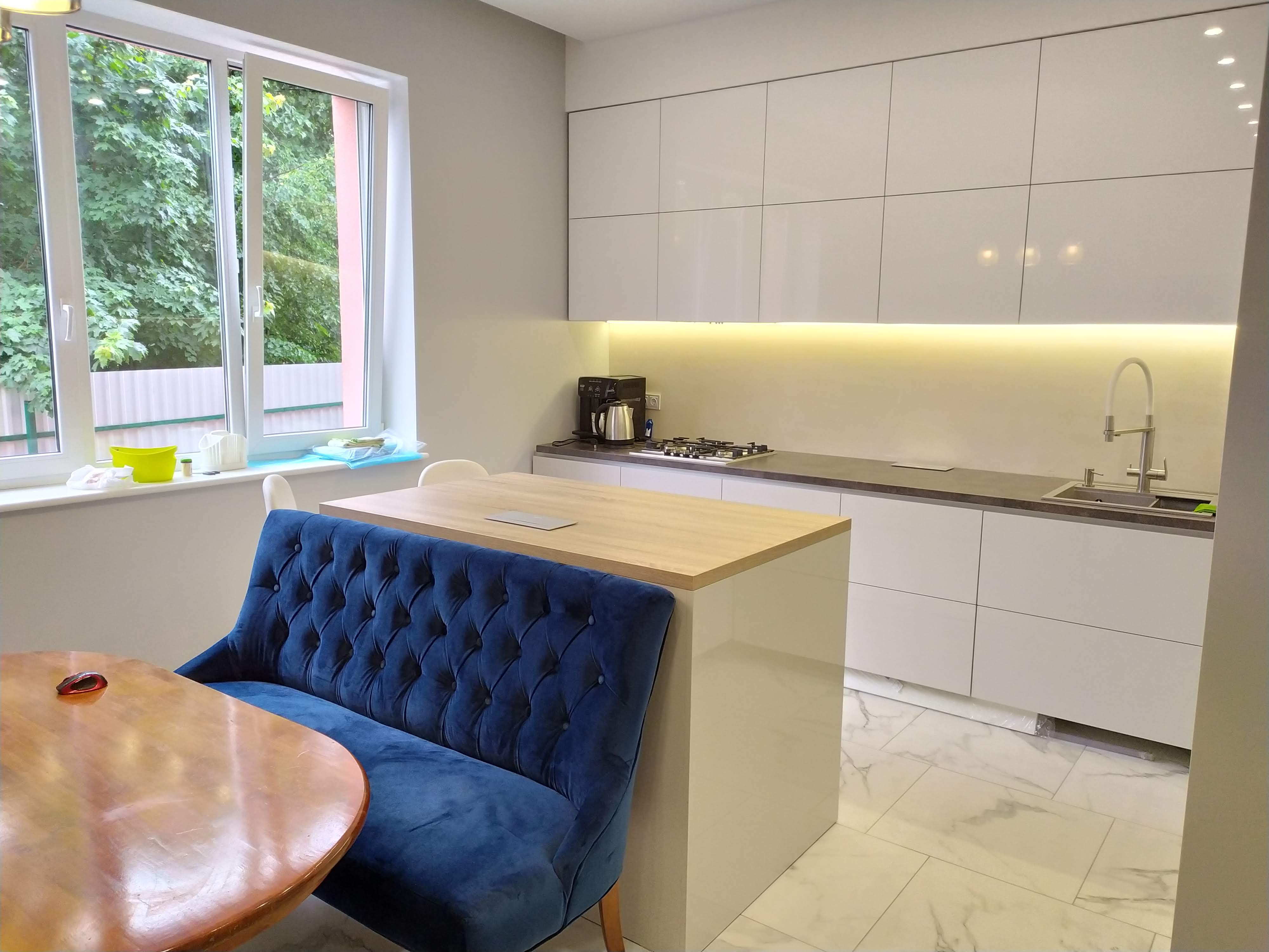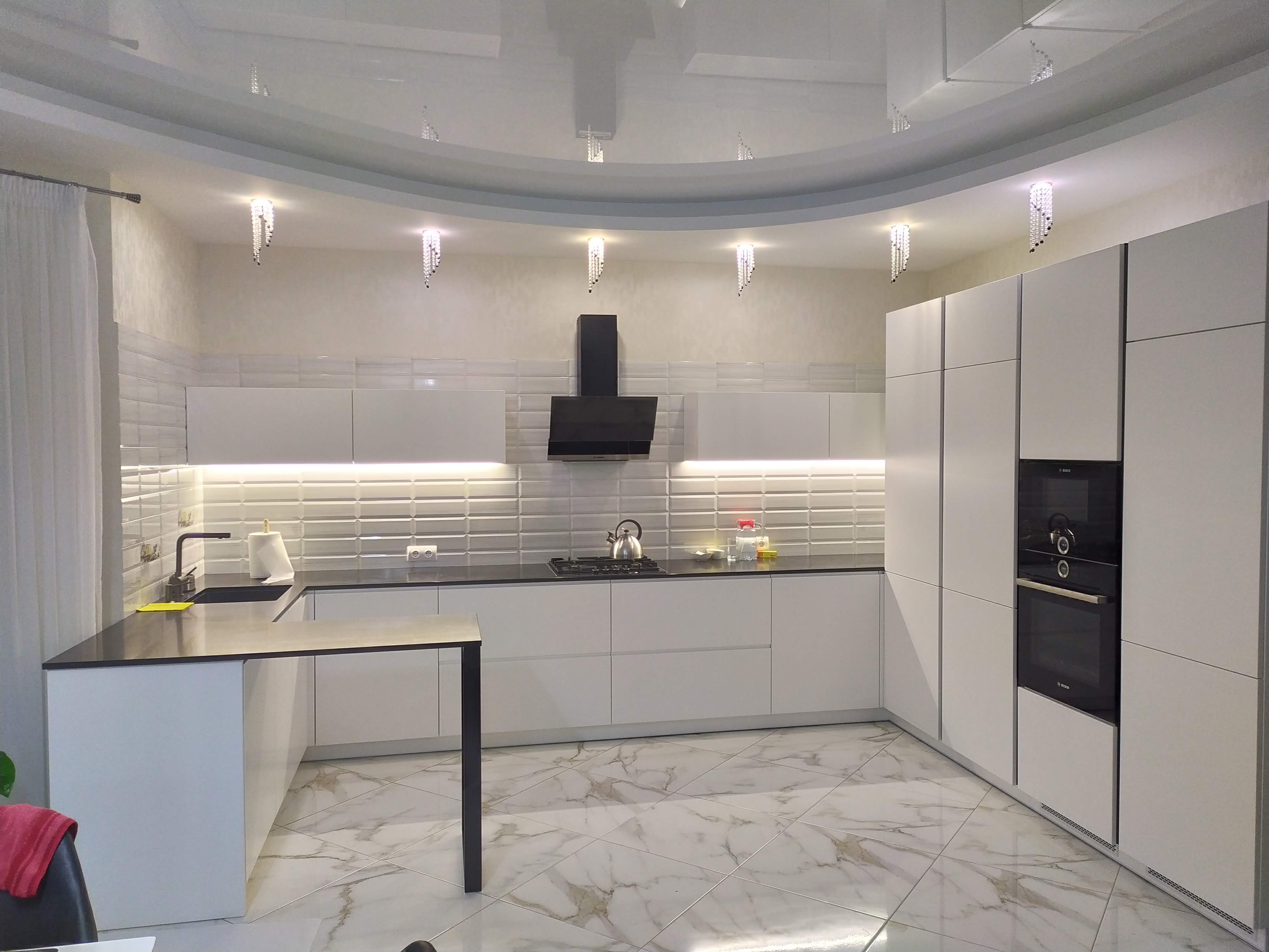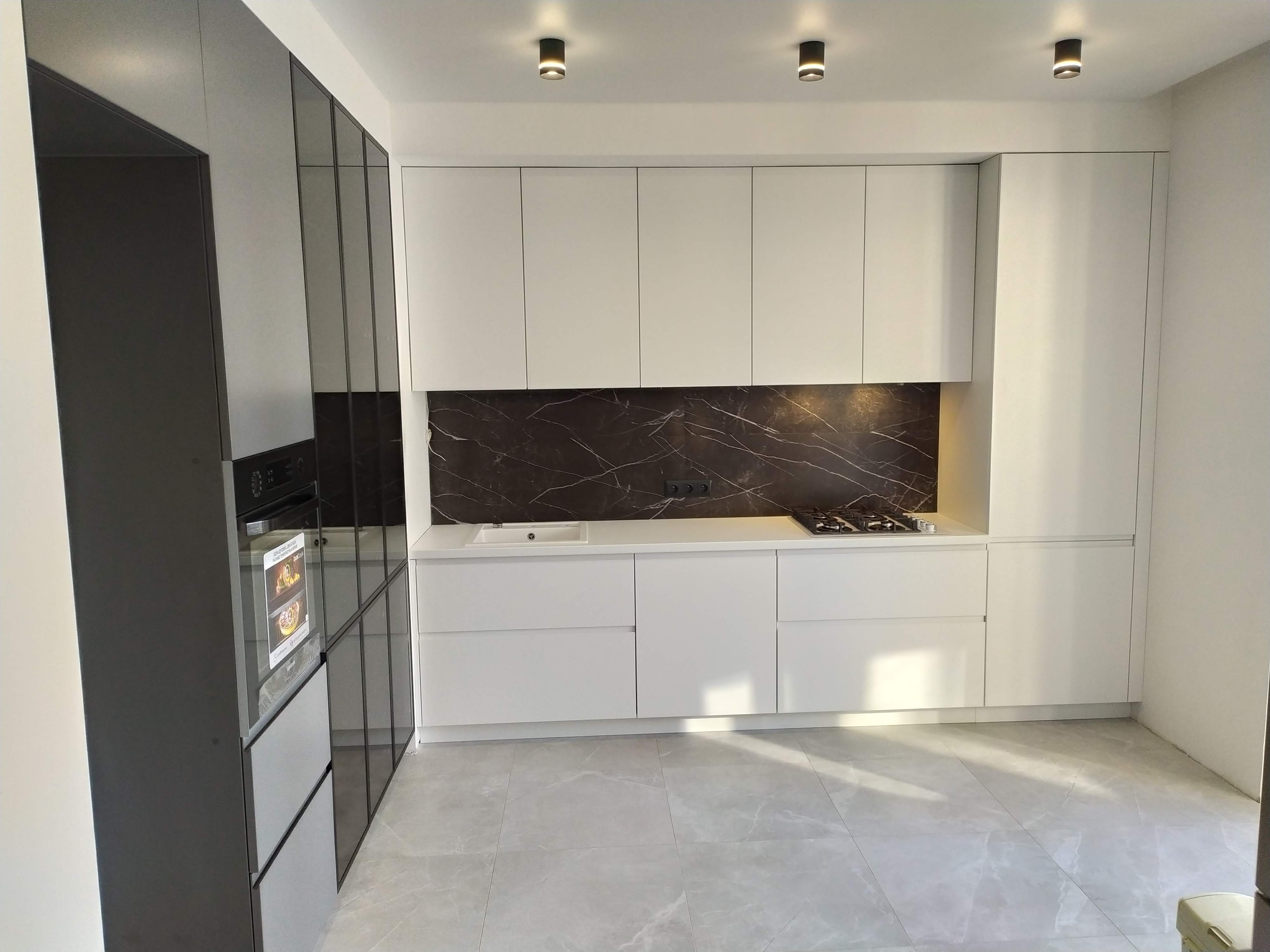 - Детали: Идеальные стыки, врезка техники в уровень и скрытая фурнитура.